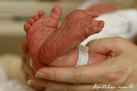 Congratulations!! What precious little feet! Enjoy the cheeseburgers!